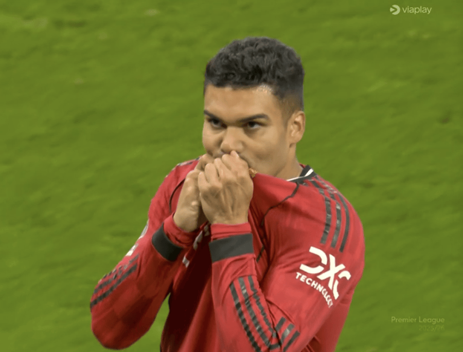 这是卡塞米罗的第9个进球,他亲吻队徽加以庆祝,老特拉福德球迷再次唱起「再踢一年」的歌曲,尽管那已经注定不会发生。